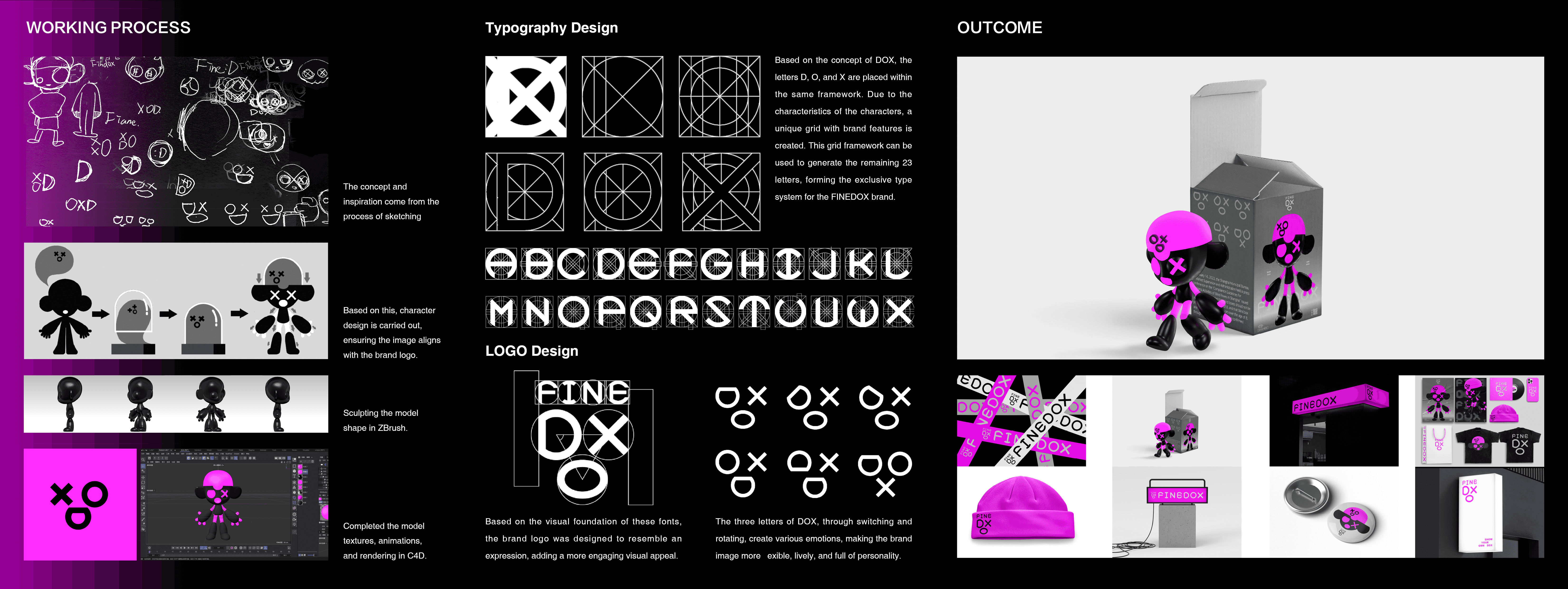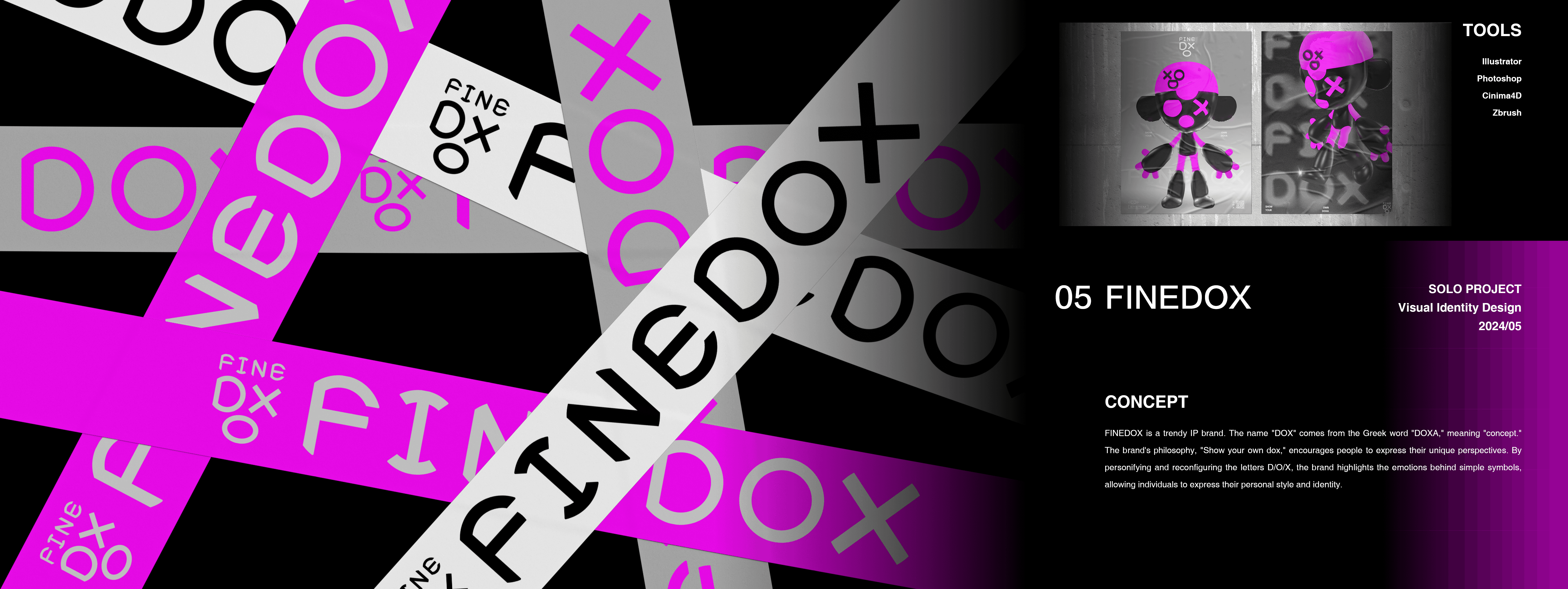 FINEDOX is a trendy IP brand. The name "DOX" comes from the Greek word "DOXA," meaning "concept." The brand's philosophy, "Show your own dox," encourages people to express their unique perspectives. By personifying and reconfiguring the letters D/O/X, the brand highlights the emotions behind simple symbols, allowing individuals to express their personal style and identity.